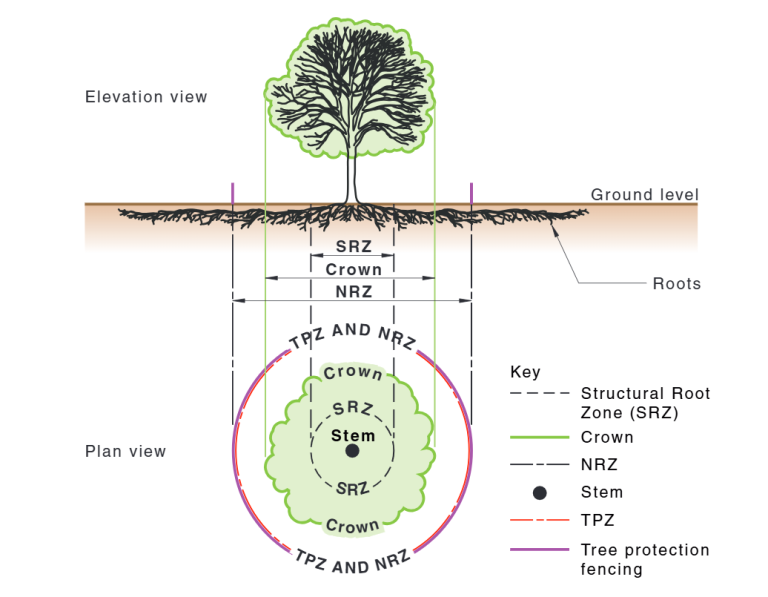 The update provides clarification of the protection zones and adds a third category for encroachment into the “notional root zone” (NRZ). Minor NRZ encroachment is up to 10%, moderate is 10-20% and major is >20%.